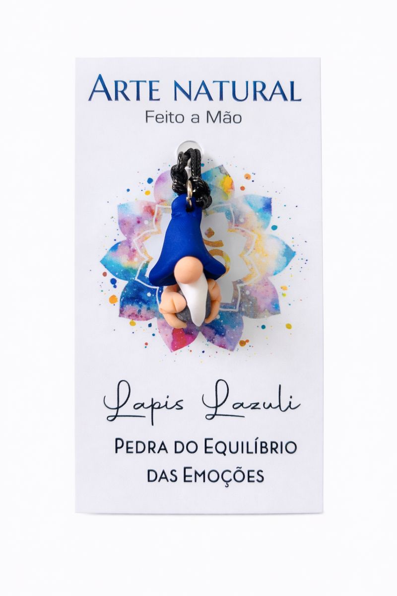 Este colar artesanal de duende, cuidadosamente feito à mão, carrega um forte simbolismo espiritual aliado à energia poderosa da pedra Lápis-lazúli, conhecida como a pedra do equilíbrio das emoções, da sabedoria e da verdade interior.